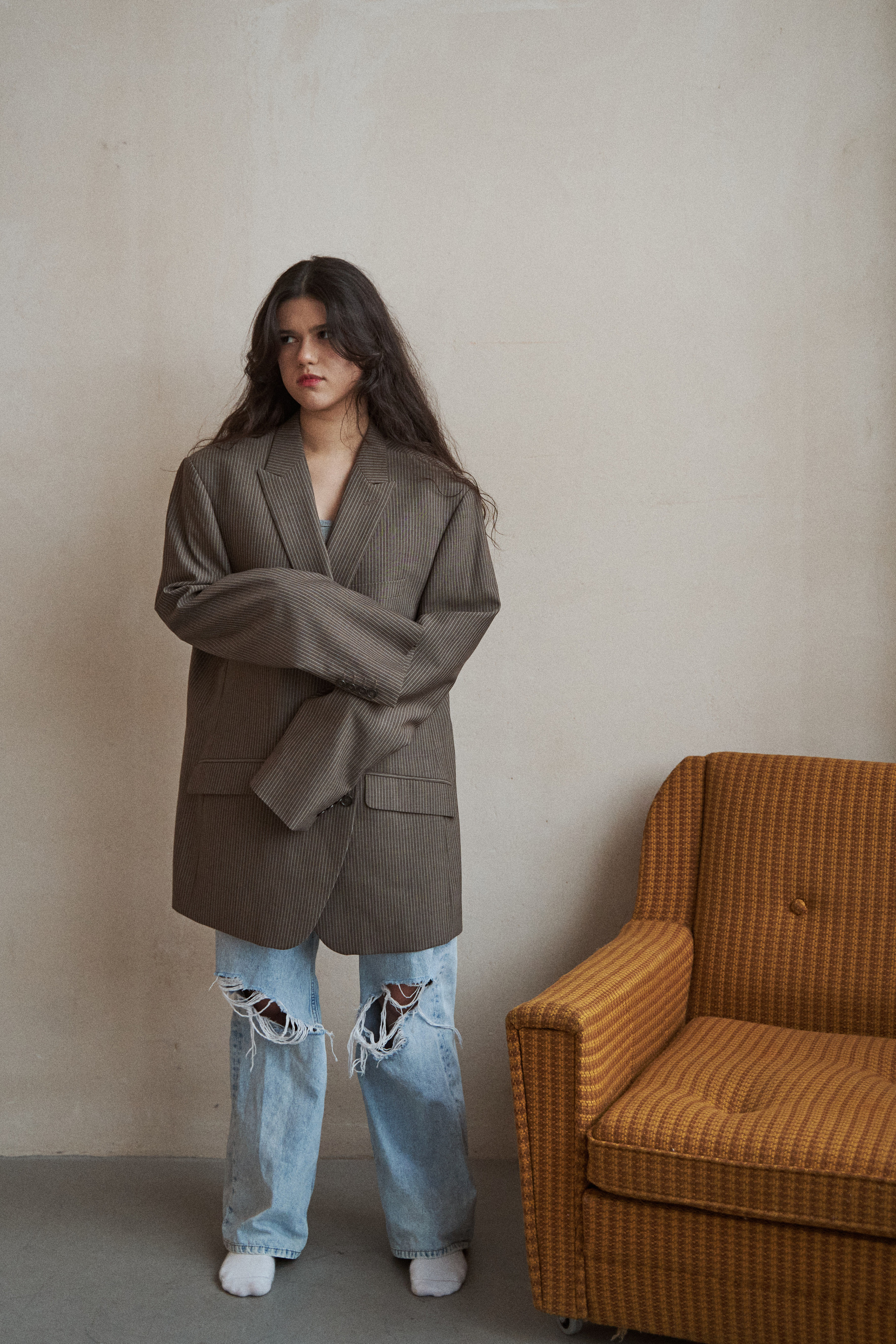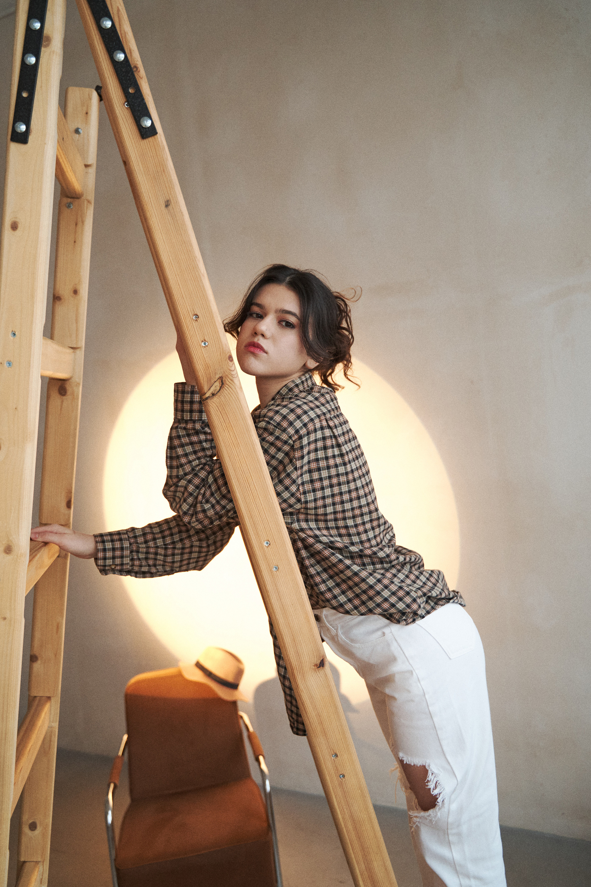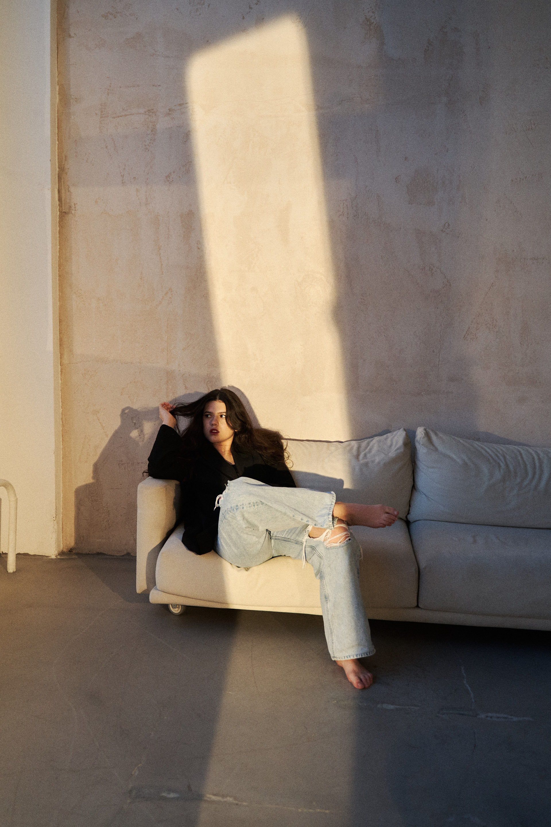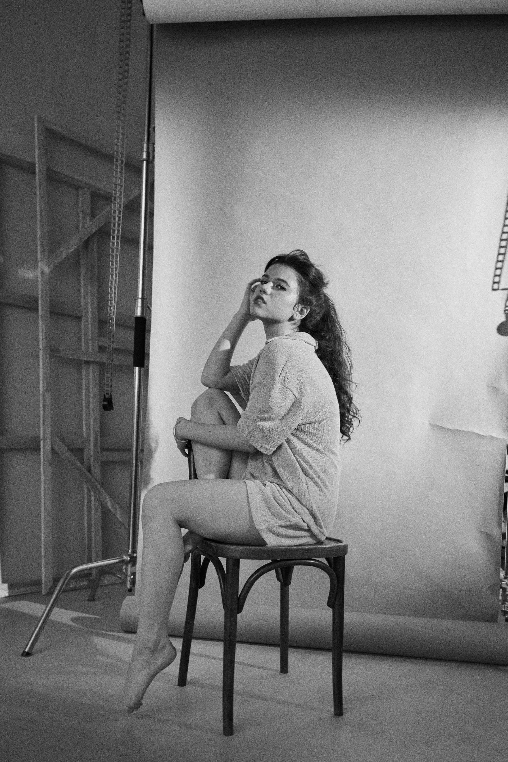 Если я не напишу, что Нармин безумно похожа на Дженна Ортега, это будет не мой текст. Ну просто красотка нереальная! Нармин захотела сделать разноплановую историю со сменой одежды, ветром, движением и прожектором. Кстати, снимали в 10.204 studio, где можно арендовать очень классную одежду, от души рекомендую
