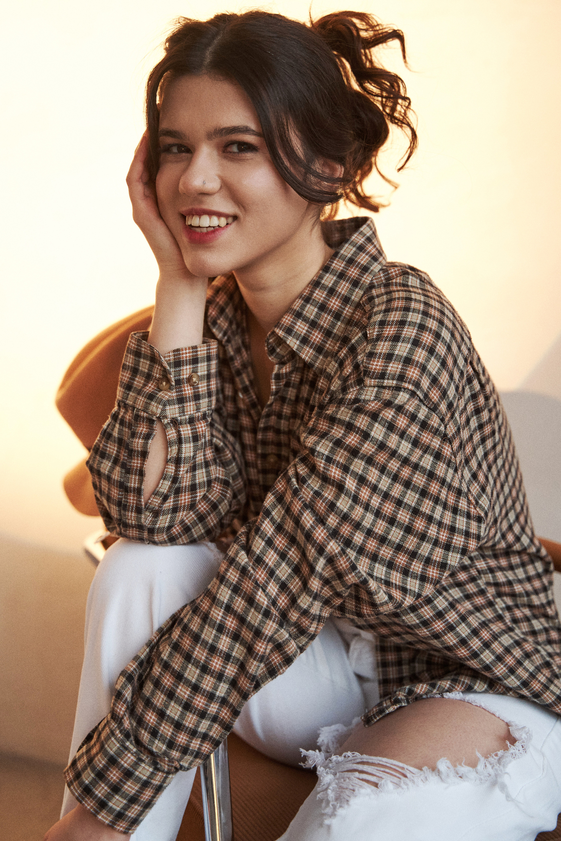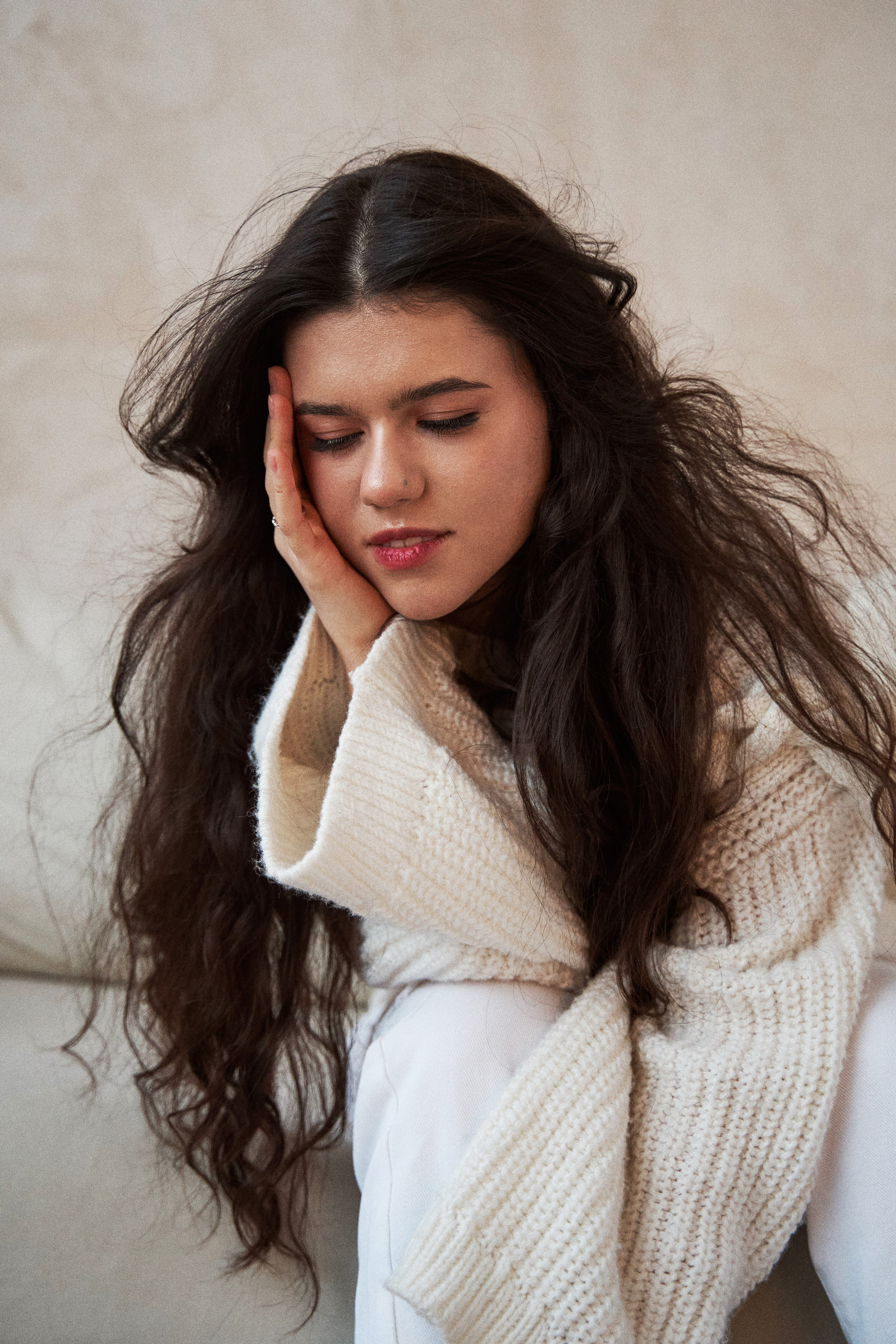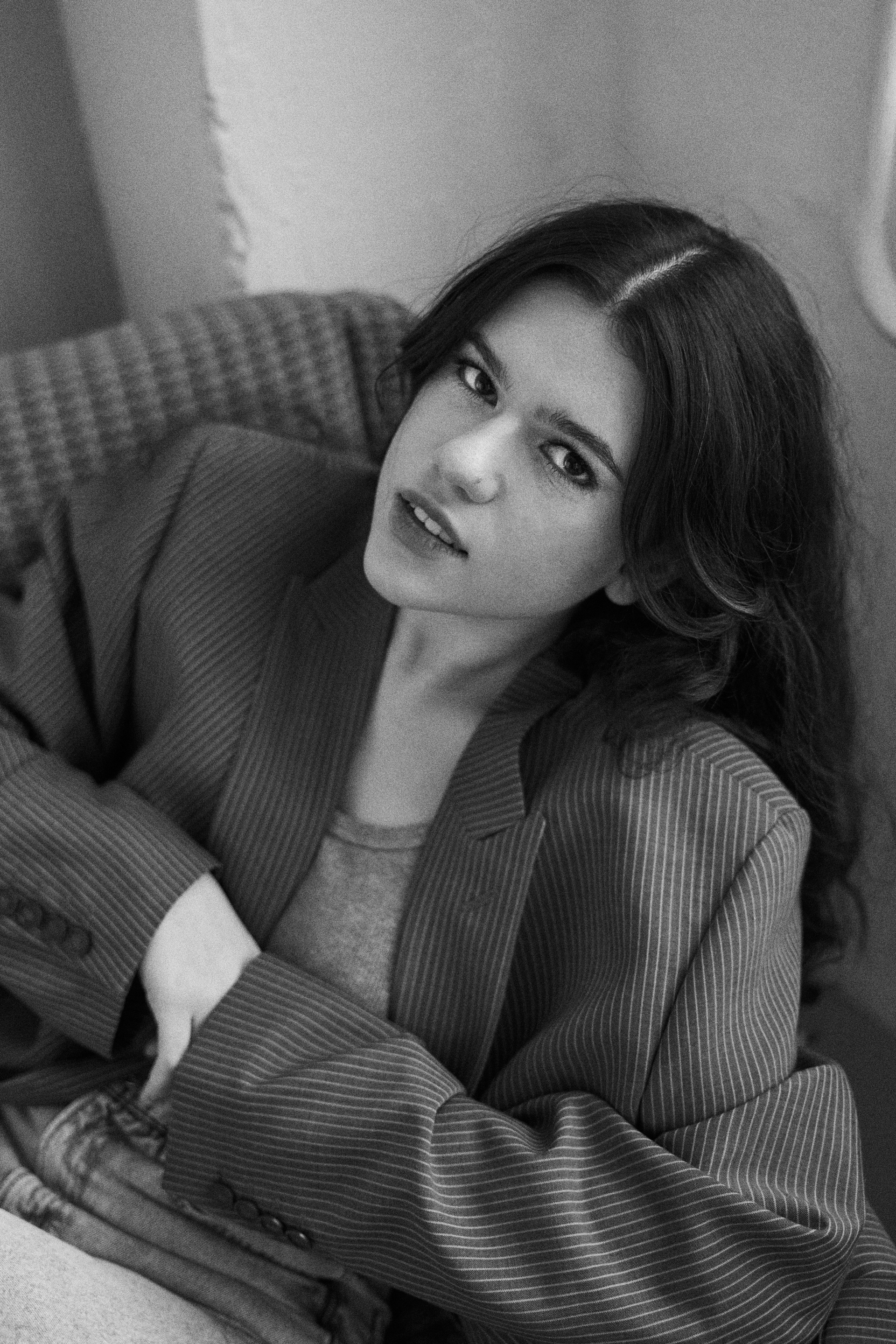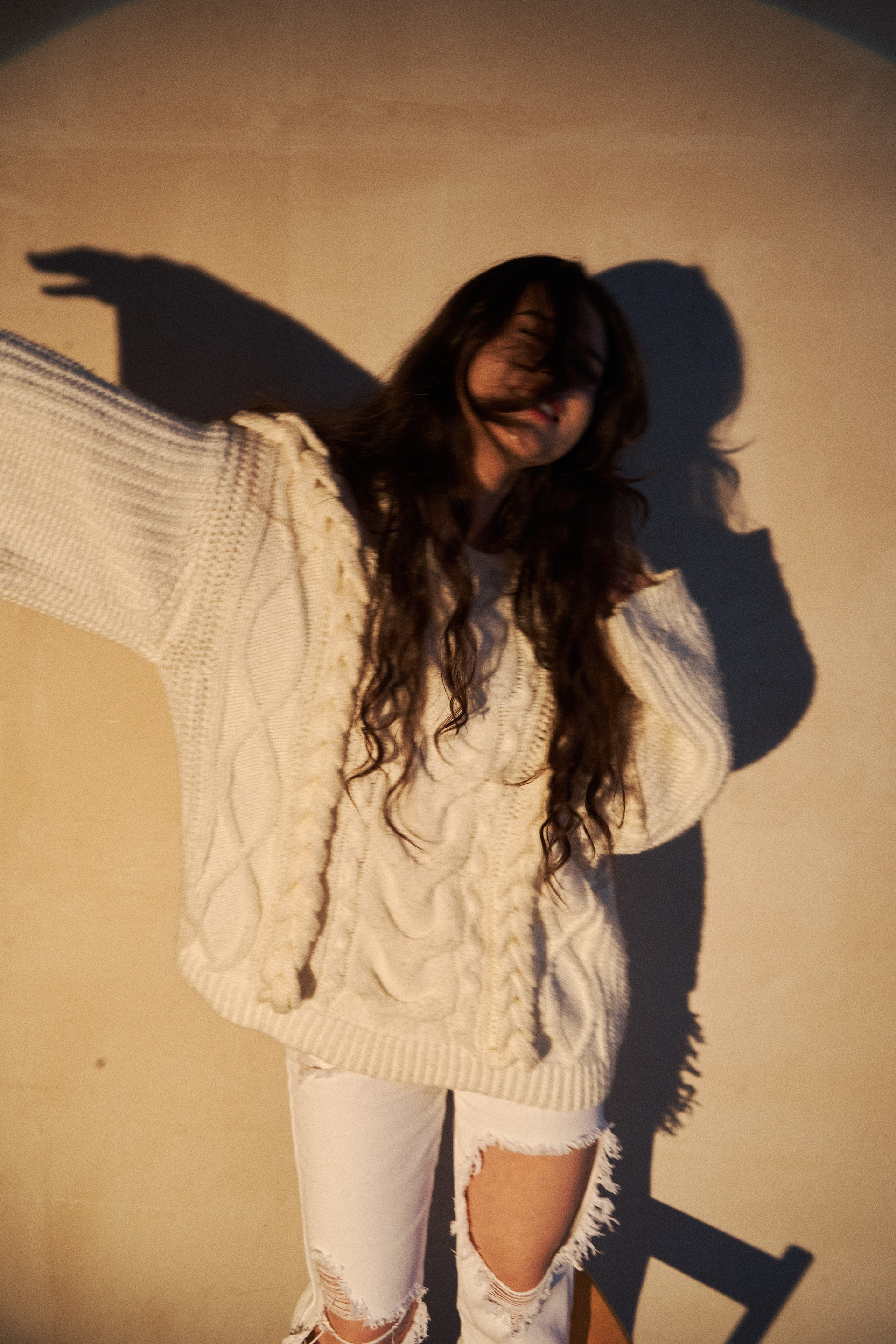 Если я не напишу, что Нармин безумно похожа на Дженна Ортега, это будет не мой текст. Ну просто красотка нереальная! Нармин захотела сделать разноплановую историю со сменой одежды, ветром, движением и прожектором. Кстати, снимали в 10.204 studio, где можно арендовать очень классную одежду, от души рекомендую